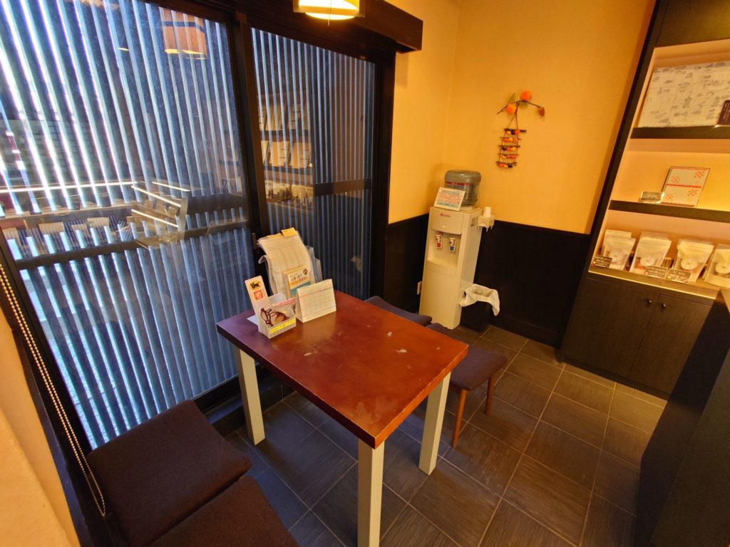 伝票もお店のテーブルで書けます。ミネラルウォーターも頂けます。