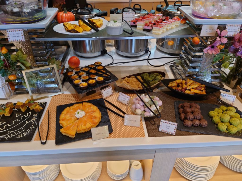 デザートはショートケーキやタルト、大学芋、おはぎと10種類以上ありました。