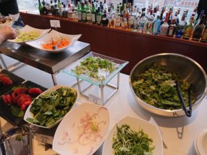 サラダとパンを取りに行きます。