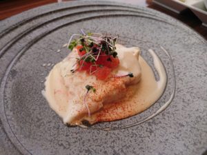 続いて2品絵目は鯛の蒸した物に白ワインとトマトのソースですね。