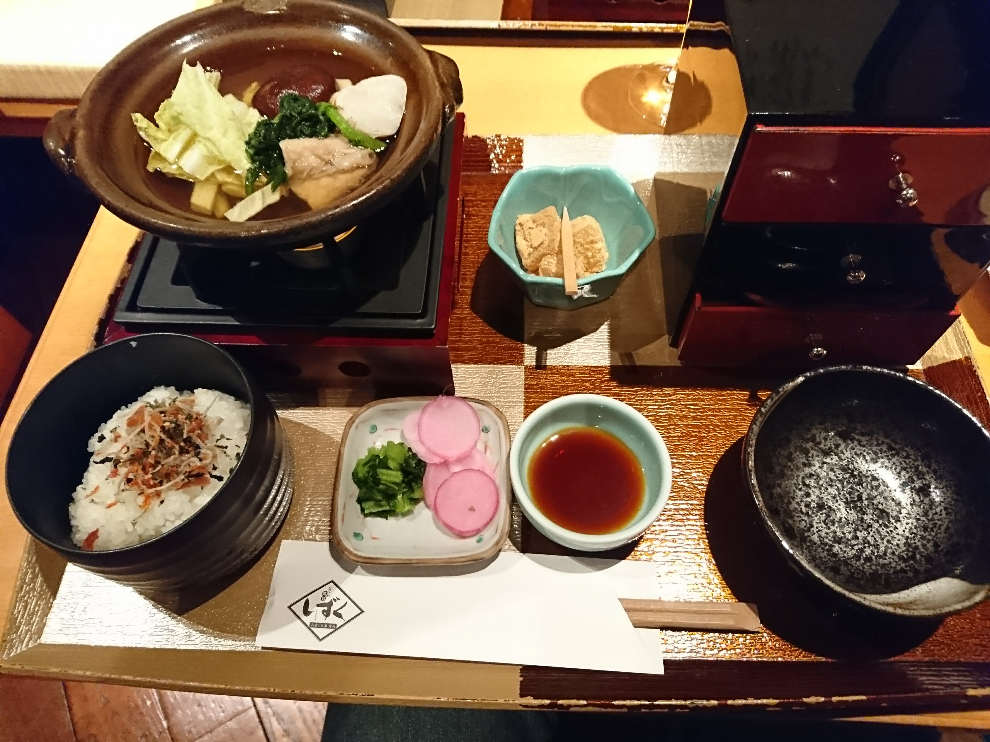 雑炊を頂きお出汁も全部頂き残った白ごはんもお漬物で頂きました。