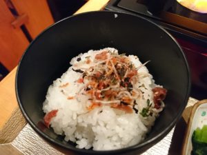 梅ちりめんにしば漬けがトッピングされていて