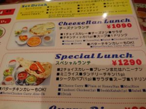 私は入店する前にチーズの文字が気になっていたのでチーズナンランチにしました。
