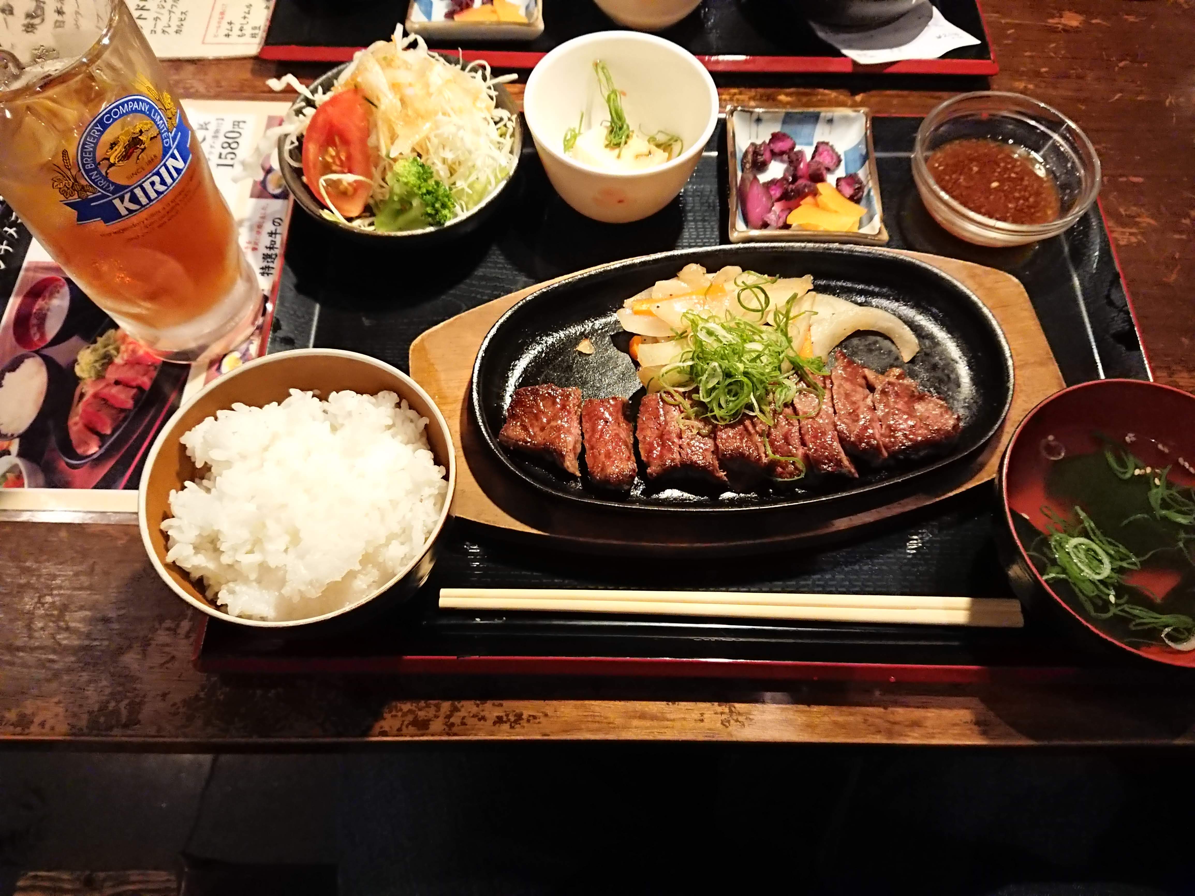 今回は試してみたいことがあったので普通のステーキ定食にしました。