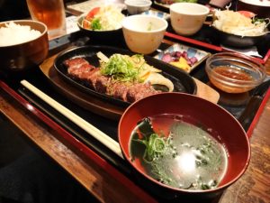 私は前から決めていたので迷わずステーキ定食を注文しました。。