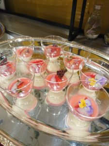 苺のゼリーです。上には食べられる生花が乗っていました。