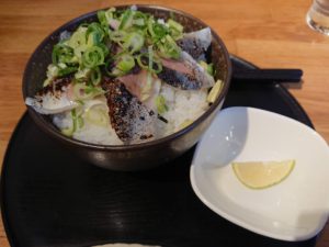 ワサビを醤油で溶いてササッと掛けて頂きました。
