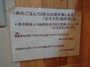 海鮮丼も500円、上海鮮丼800円、特上海鮮丼1390円